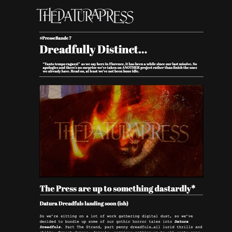 Pressebande is the Datura Press newsletter: a pared-back dispatch carrying new chapters, sonic experiments, studio notes, and the occasional revelation from behind the curtain. Nothing noisy. Nothing routine. Only the transmissions that matter.
